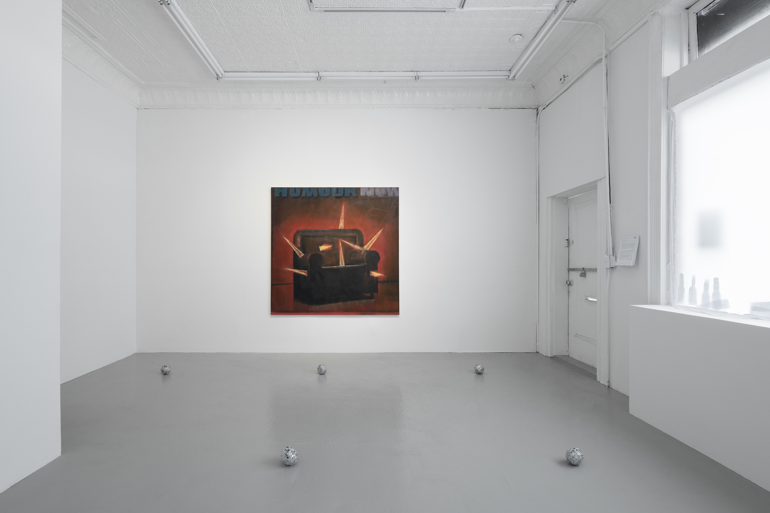 In what Lauren Berlant calls humorless comedy, we laugh at unwitting subjects whose attempts to ‘game the system’ fail in ways that are upsetting: think of the aspiring business mogul whose half-baked plots end up flaccid, or the poorly aging man wearing his hair in a sad comb-over. Emerging from a feeling that can be aqueous and indeterminate, laughter signals a slight revolt of the surface of social life. It is sweetest when laughter surfaces at the margins, at unexpected moments when the ice breaks and we find ways of relating to each other, sometimes across great temporal and geographic distances. This moment of relation has a utopian shimmer, and while the works included in this show are not concerned with offering a vision of a sci-fi future, they do give us a chance to laugh at ourselves, and at our own visions of the past.